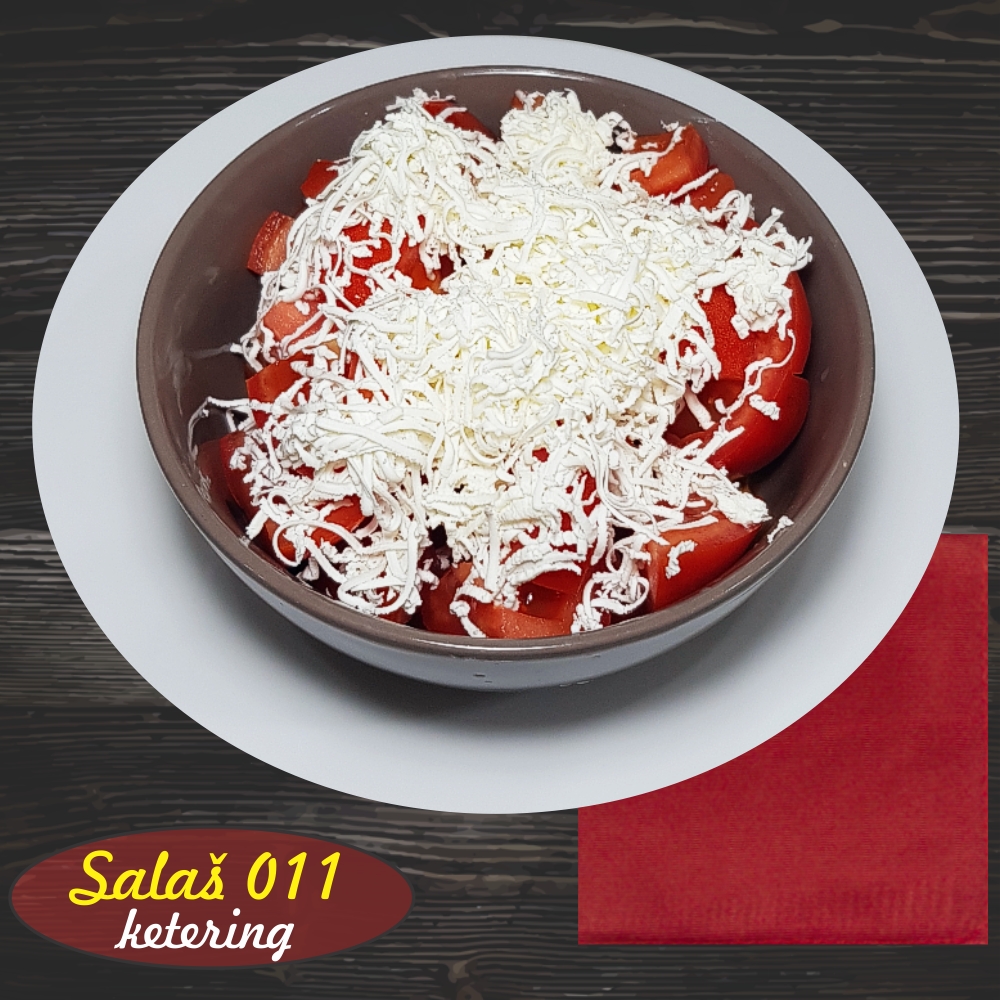 Paradajz, rendana feta, maslinovo ulje, sirće, so.
